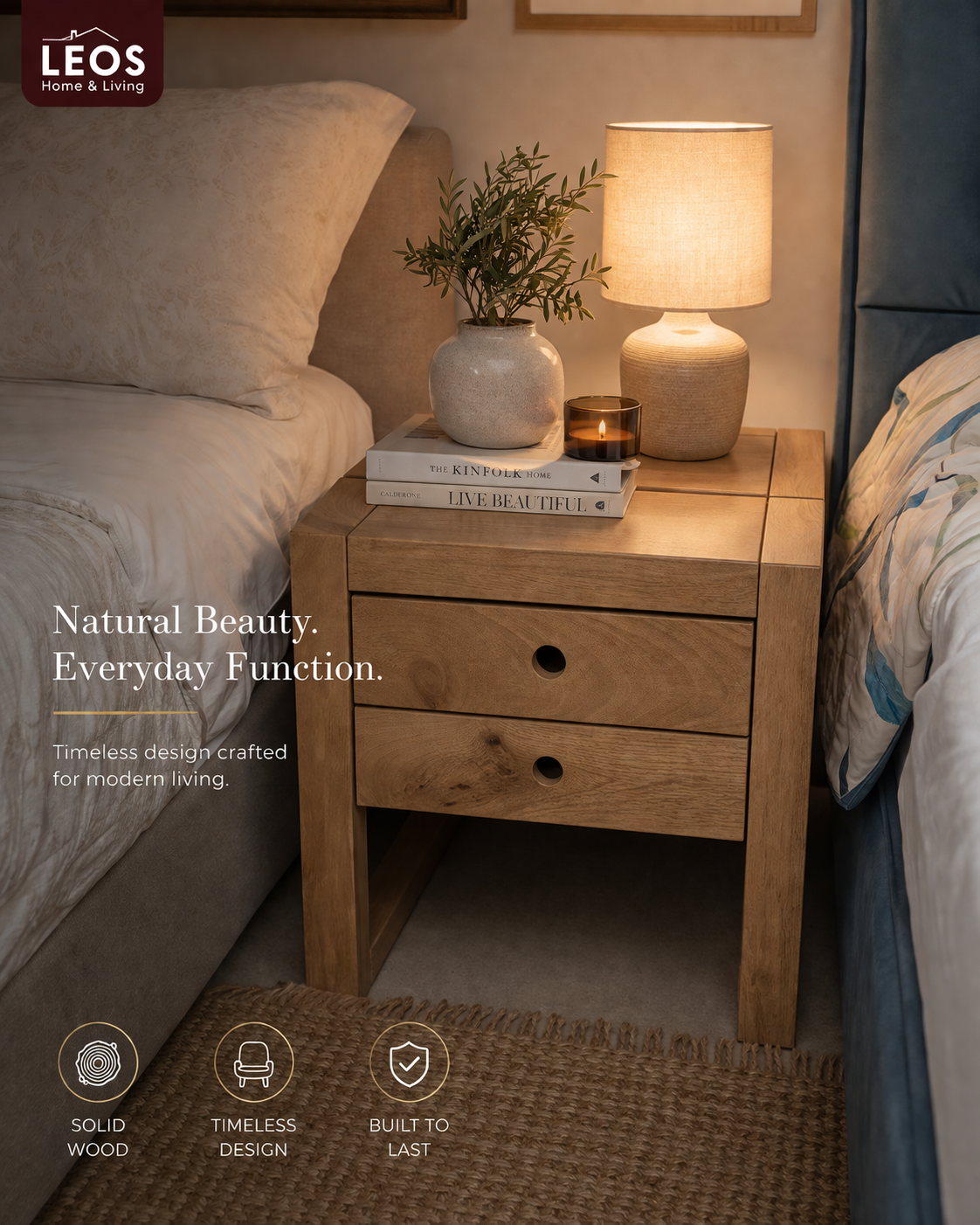Ideal for apartments, villas, and holiday homes, this nightstand combines style, durability, and practical storage for everyday living.